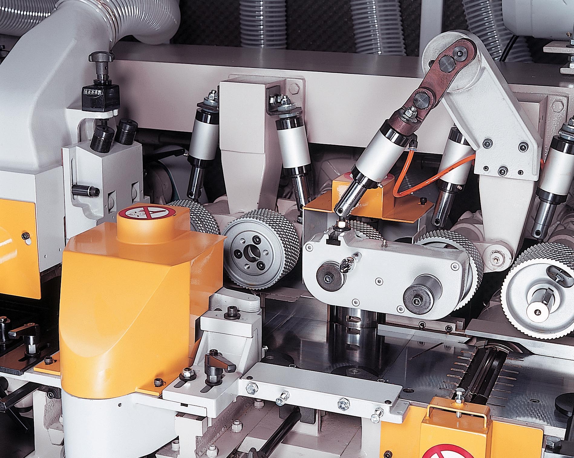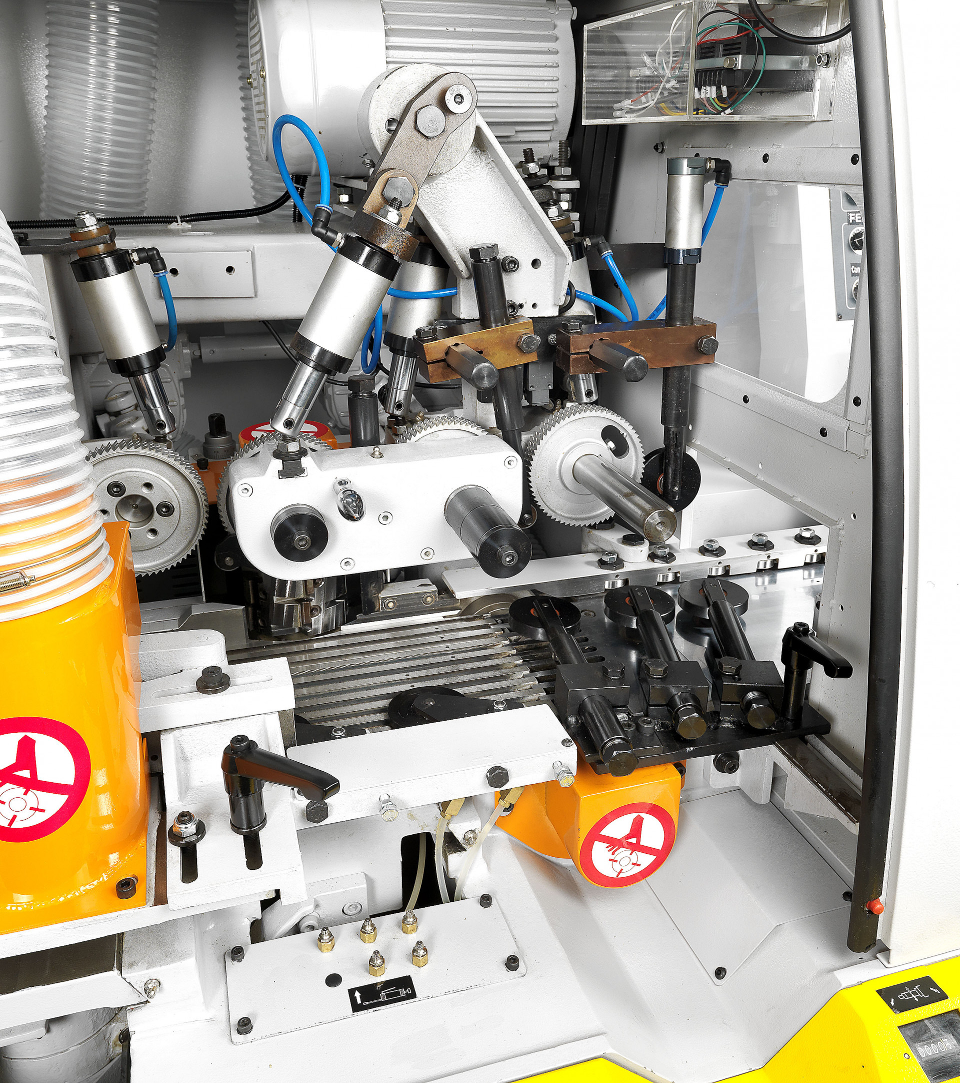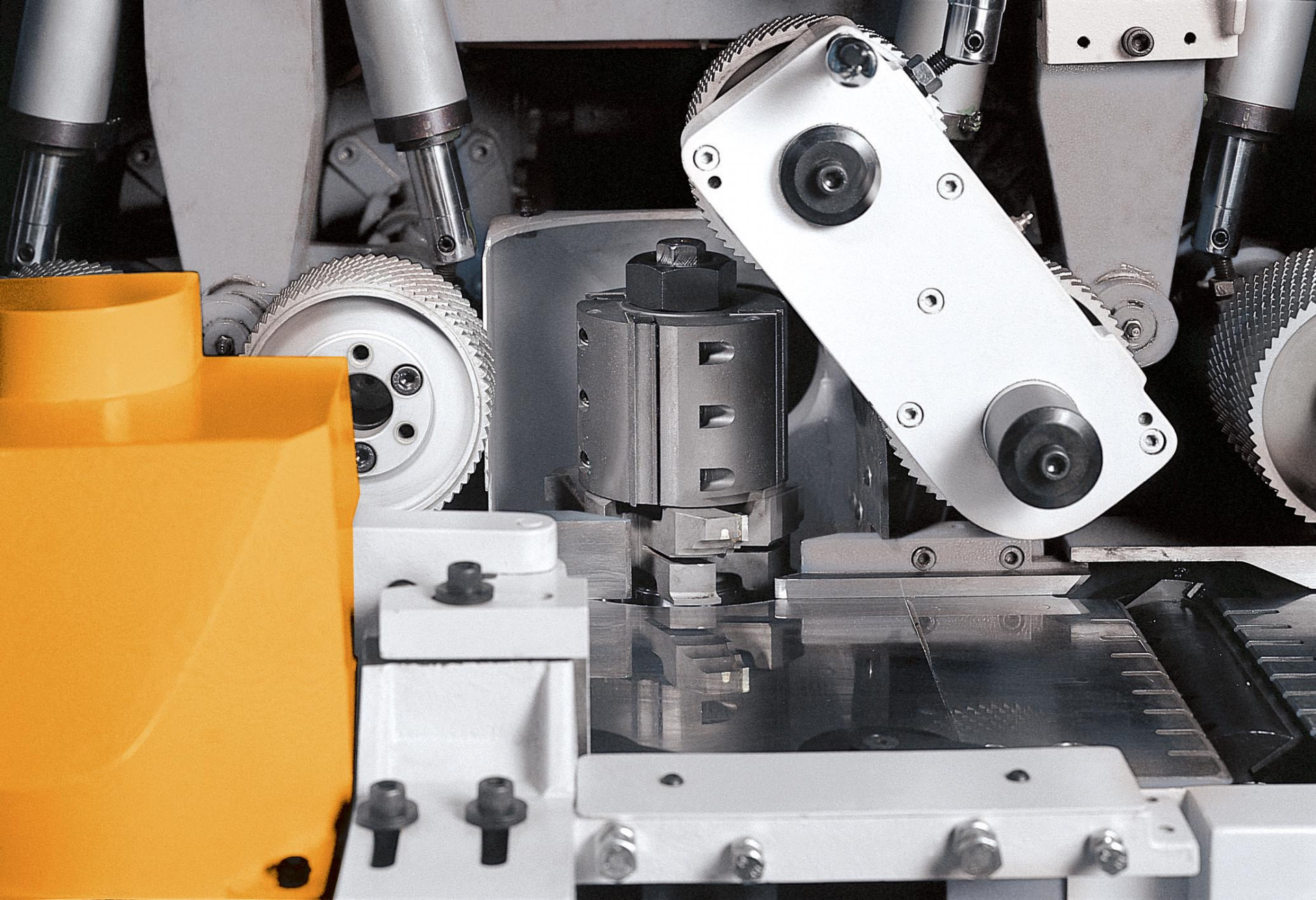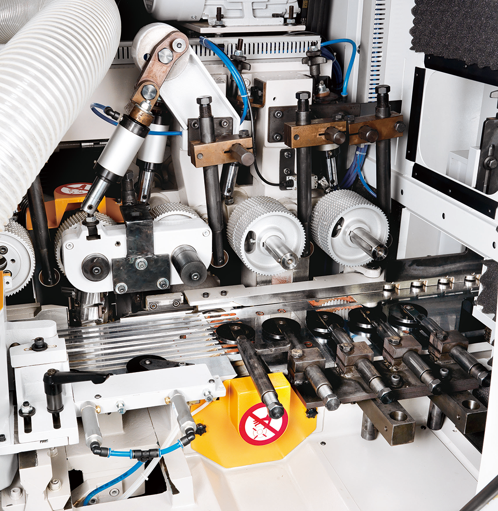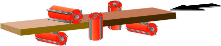 GAU JING GN Shortpiece series 4 side planer & moulder offer unbeatable accuracy and productivity designed for planing short pieces. The cast iron construction is designed and engineered to meet industry requirements for medium production and fine surface effect. It promises dramatic performance gains with many fine features: Rugged constructed throughout for maximum stability; High precision spindle creates extremely fine surface effect; Centralized air pressure regulations and centralized lubrication system for added convenience. The machine feeding speed is up to 60m/min saving a lot of working time. Special with automatic chain type feed machine (with 3M conveyer) which is fluent and fast feeding for the short pieces.