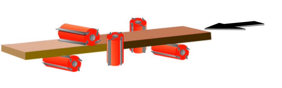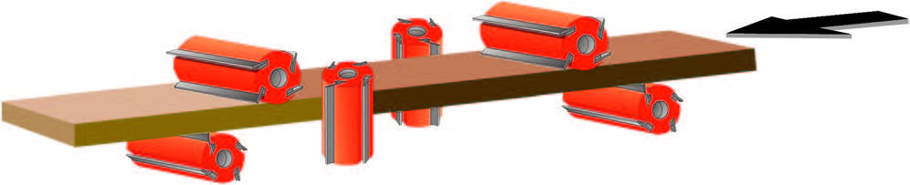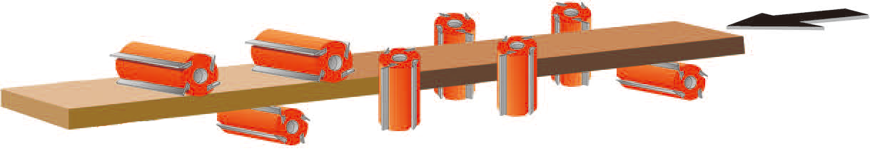 超強的機械結構搭配高速精密主軸及450MM寬送料輪安裝油壓軸外支撐,保證加工時擁有最佳的穩定性。機器上可加裝平面磨刀及成型磨刀裝置,再搭配自動定位系統,提昇操作的方便性和切削的穩定度。